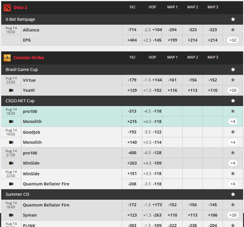 The bookie is showing an enviable understanding of the expanding eSports betting niche. It has dedicated an entire section of its site for to-the-core eSports fans. Going to the left-hand side you’ll see the quick links to the markets spread out vertically. Alternatively, you can scroll down the middle portion of the page to flick through all events available for wagering. Either way, you’ll discover lines for the predominant titles of the branch. What really stands out in our eyes is that, at the time of writing this review, the site was following closely three CS tournaments simultaneously.