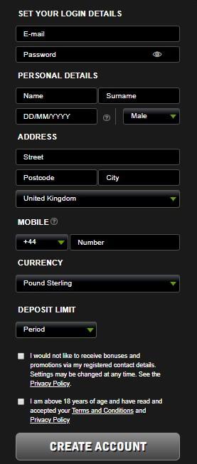 To start your free Betsafe account registration procedure, you must click on the green “create account” button located in the top-right corner of the screen, which can be found on every page of the website. A single-step procedure will request personal details such as email, address, mobile number, and currency preference. Once you have that done, all that would remain is to agree with the website’s privacy and T&C’s policy, by ticking off the checkboxes at the bottom.