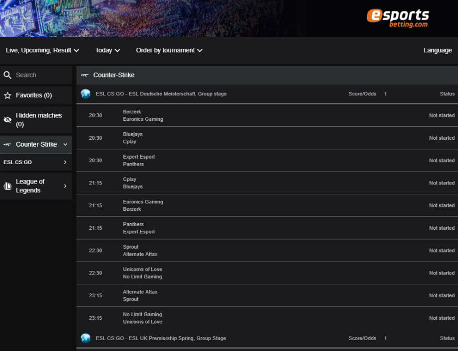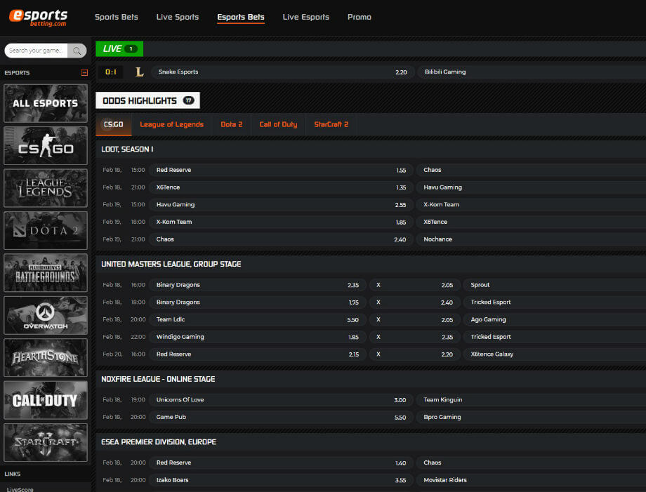 Live Betting and Live Streaming at Esportsbetting.com